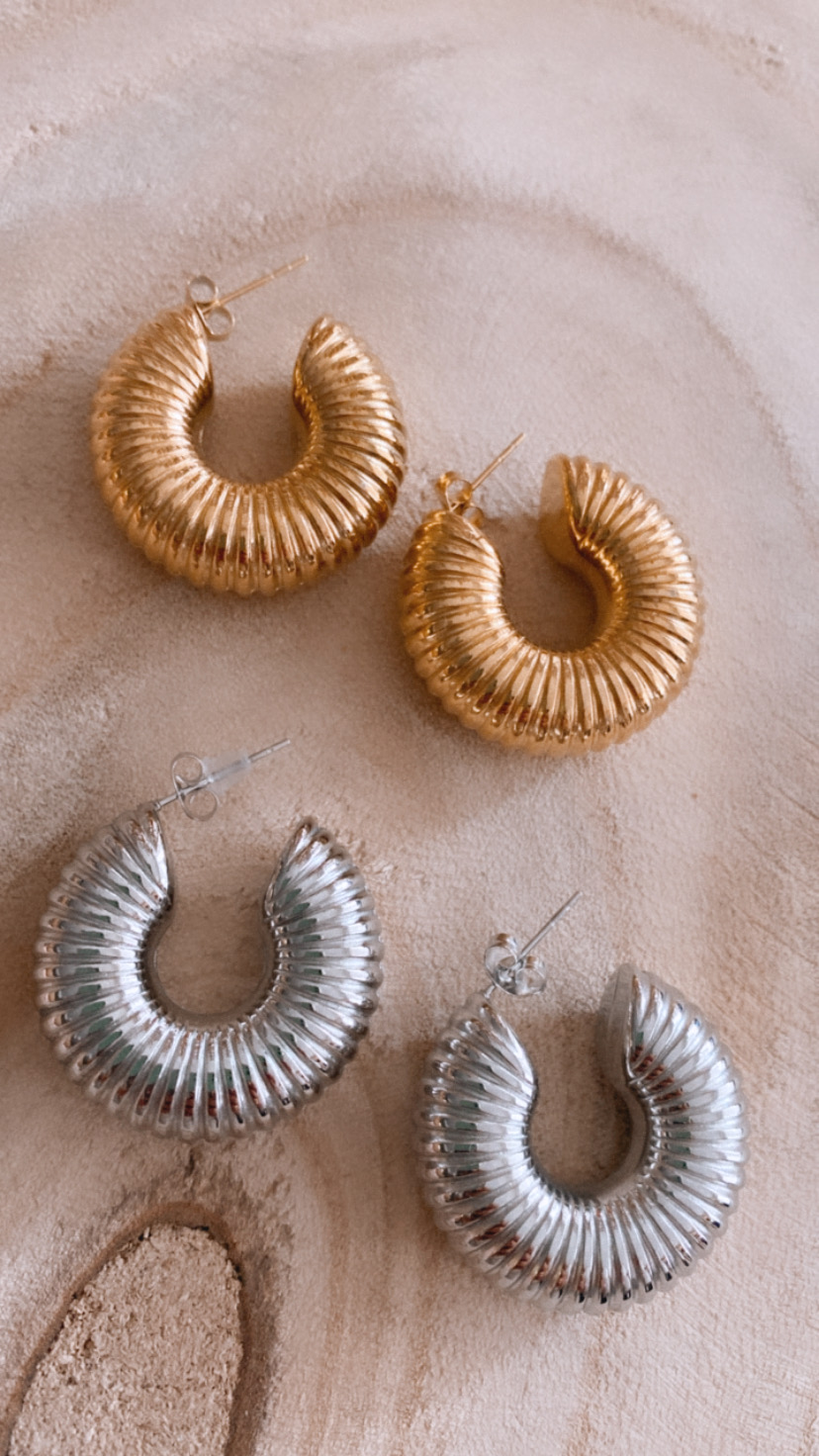 Aros de gran volumen y acabado rayado.