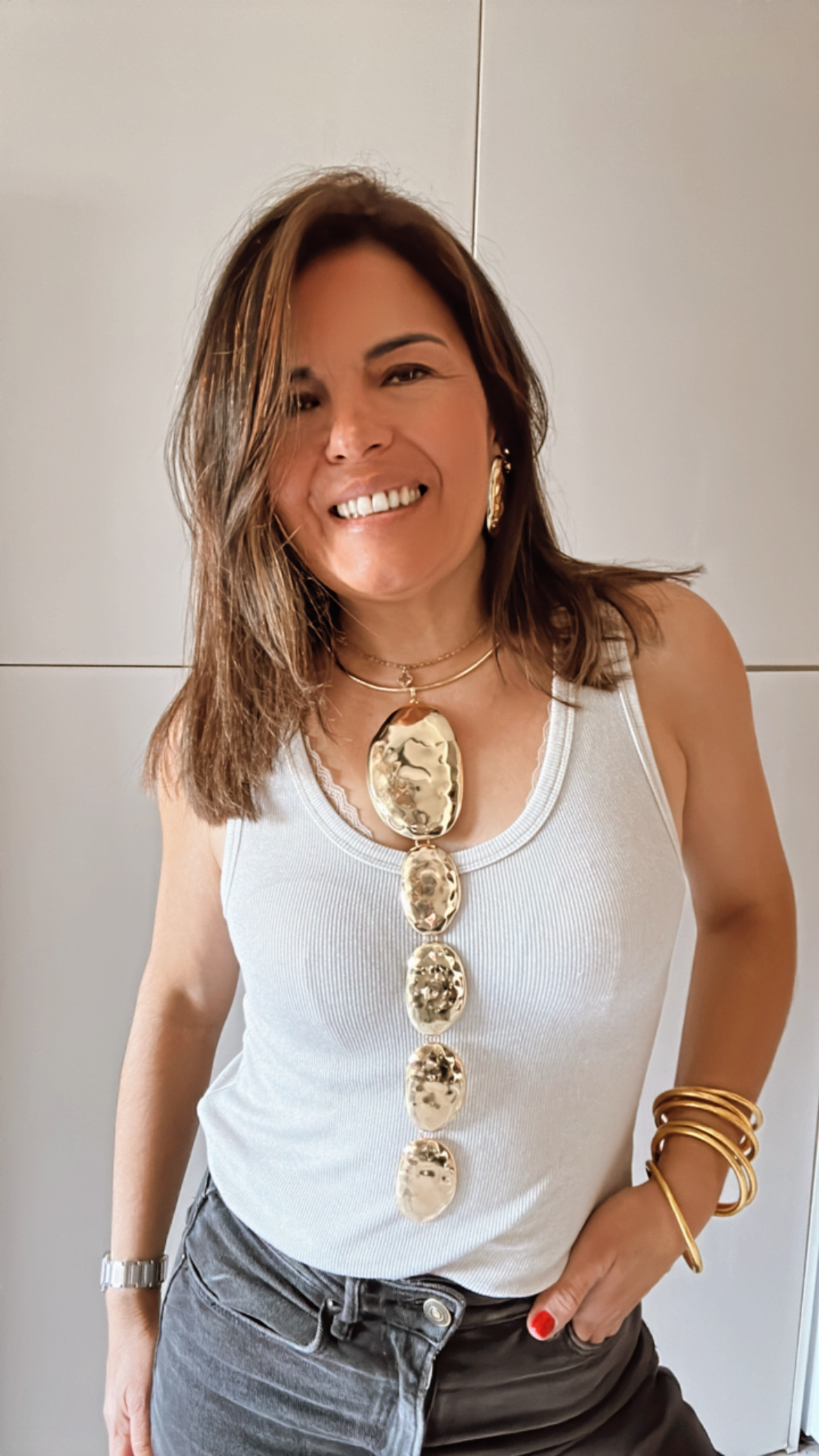Material: Cadena eslabones y acero en oro.