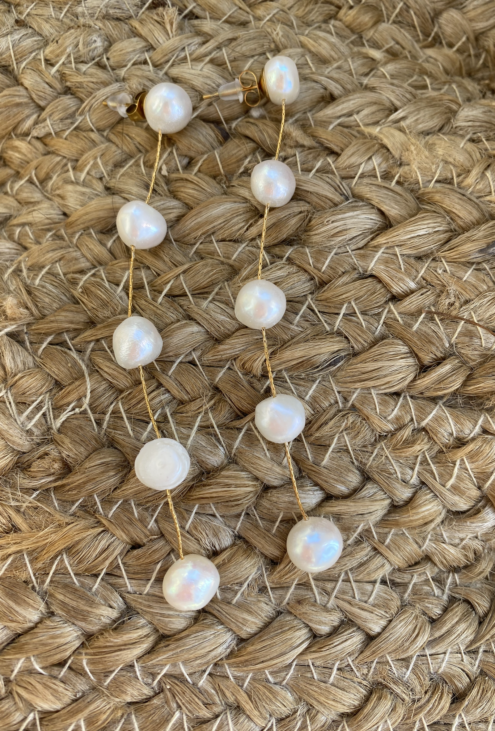 Una monada de pendientes largos de acero en oro y perlas. No pesan nada