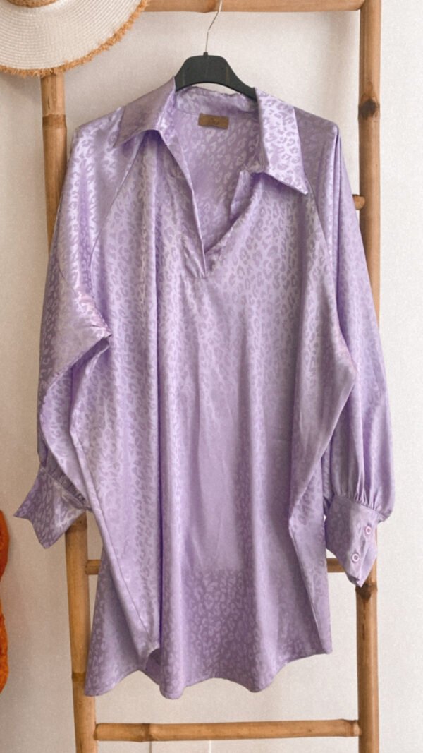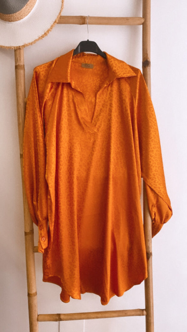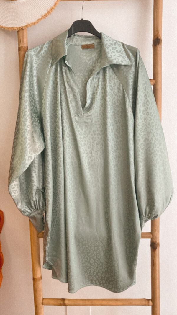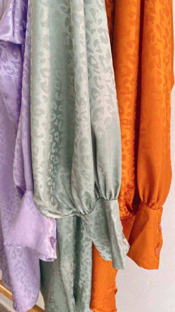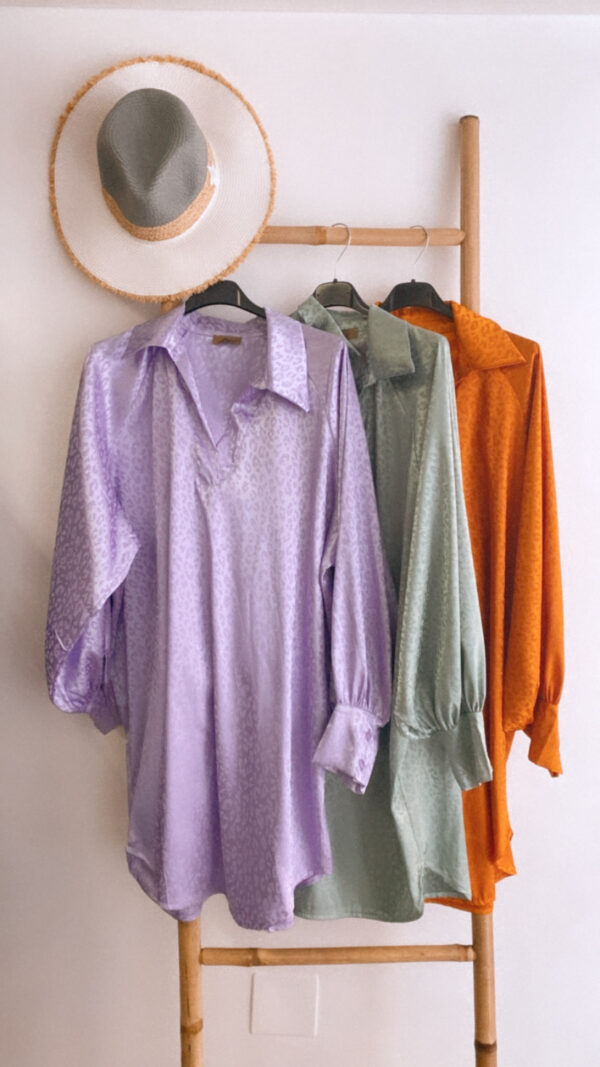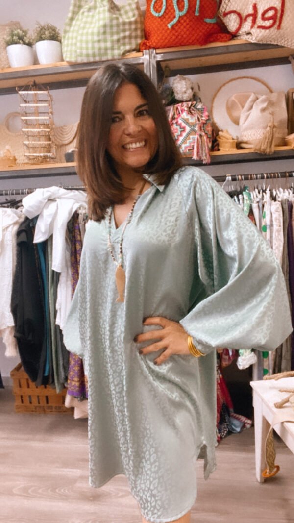 Una monada vestido camisero de raso y con unos detalles animal print que le dan un toque diferente.